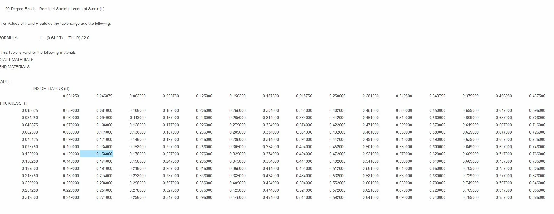 i see table bend in creo is use for ! 90-Degree Bends - Required Straight Length of Stock (L) for different angles what rule use creo