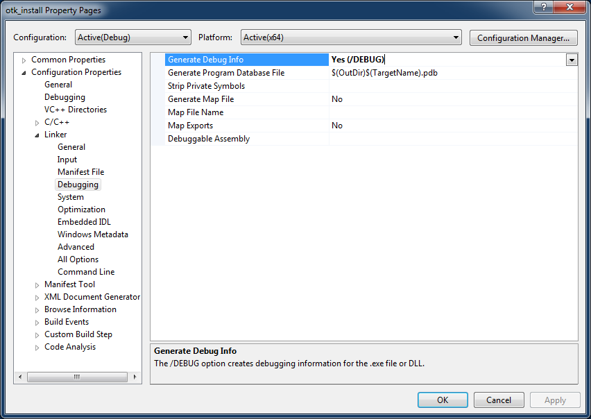 I use Creo Parametric Toolkit (Pro/Toolkit) much more than OTK C++, so I checked the OTK User Guide to see what it says about debugging. It recommends Synchronous Multiprocess (.exe) mode to test and debug programs that you ultimately plan to run in Synchronous DLL mode.  Here's a quote from page 22 of the user guide PDF: