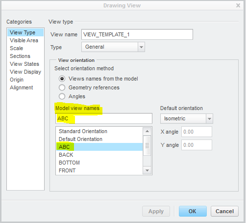 result = ProDrawingViewOrientationFromNameSet(model, view, L"ABC", L"Isometric", 0.0, 0.0);