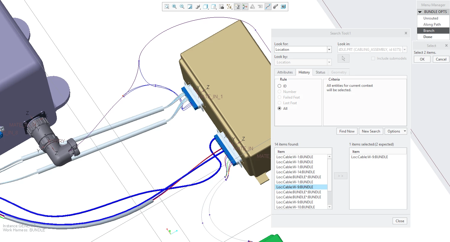 Mapkey to select two cable locations for create branch bundle feature