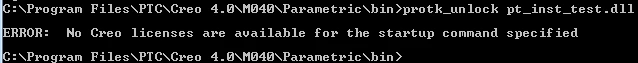 protk_unlock returns "ERROR: No Creo licenses are available for the startup command specified "