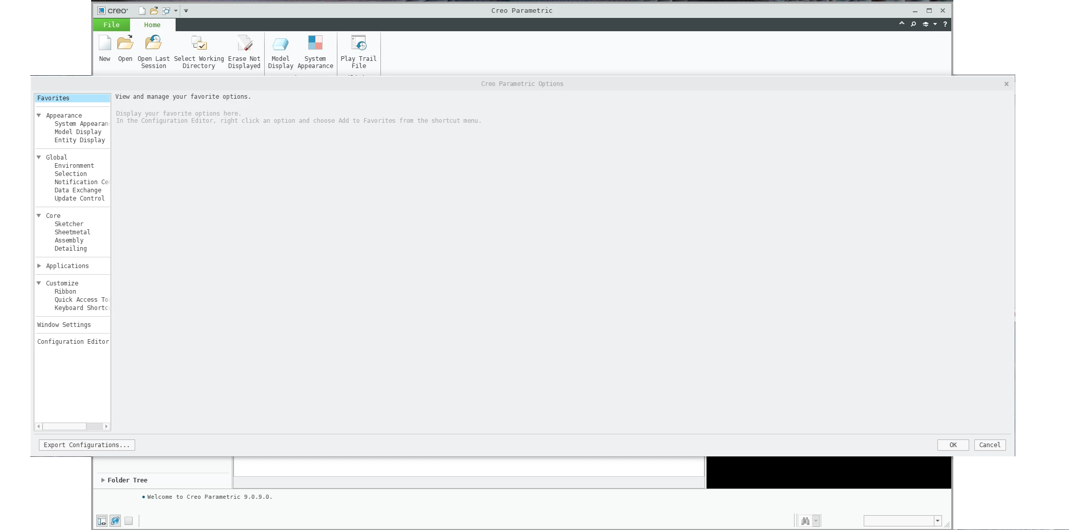 When I open the Creo Parameteric Options window, via the command File -> Options -> Options the window the dialog window that pops up is so wide that the options are not on the screen. They are shoved off-screen to the left.