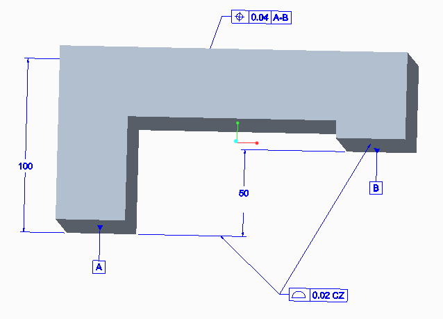 The tolerance zone should be created as common zone (CZ behind the tolerance value)