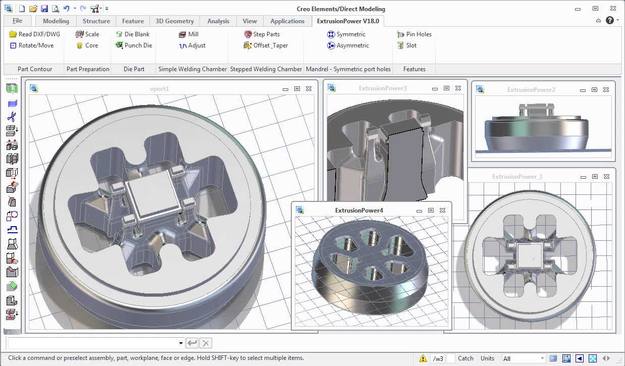 There is now a new Creo Elements/Direct Application for the creation of Aluminium Extrusion Dies, "ExtrusionPower".
