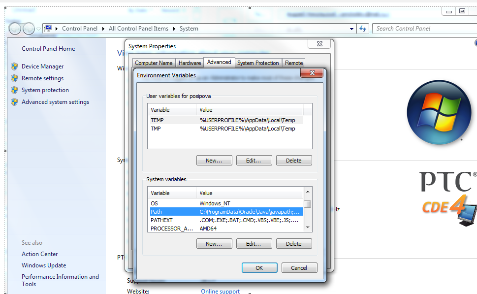 - Go to explorer, right click on "my computer" -> Properties -> Advanced settings -> Environment variables -> edit "PATH", add ; and then path to your tomcat extensions folder, “ ;<path to extensions folder of tomcat> “ or, for example ";C:\ptc\Thingworx\webapps\Thingworx\WEB-INF\extensions"