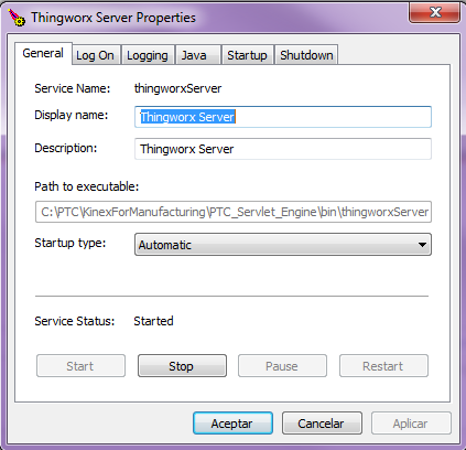 <ThingWorx install path>\ThingWorxManufacturingApps\PTC_Servlet_Engine\bin\thingworxServerw.exe