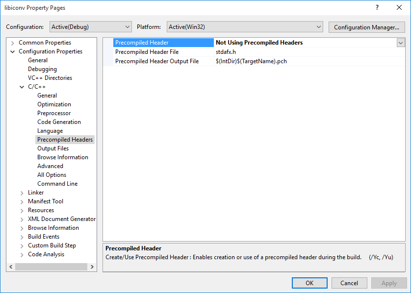 - Copy "...\libiconv-1.15\libcharset\include\localcharset.h.build.in" to the project folder "...\libiconv\libiconv\" and then, rename the copied "localcharset.h.build.in" to "localcharset.h".