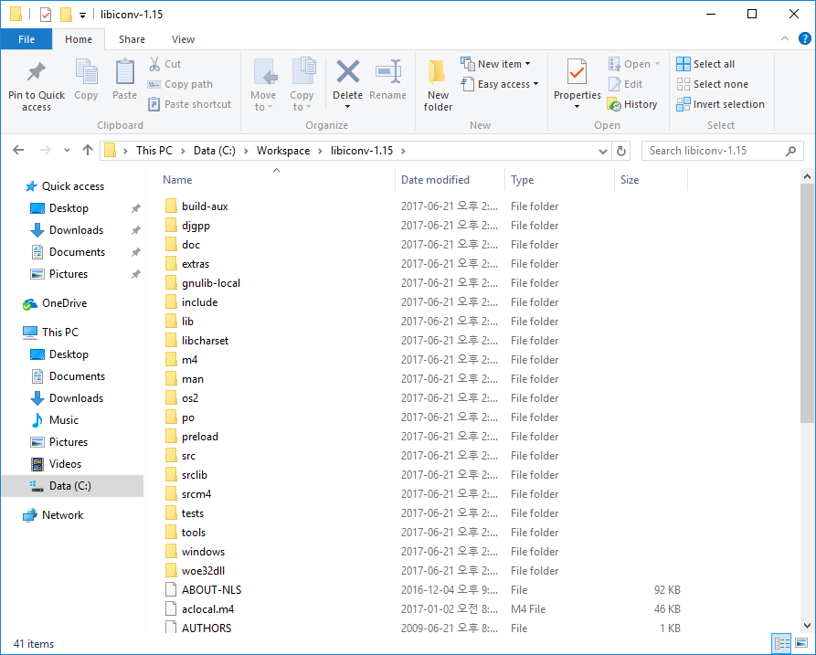 - Copy all the header files (*.h) and definition files (*.def) in the folder "...\libiconv-1.15\lib" to the project include folder "...\libiconv\include".