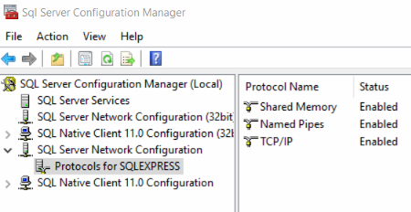 - Ensure that the TCP/IP is enabled for the Protocols for the SQL Express, as I have shared in the screenshot above
