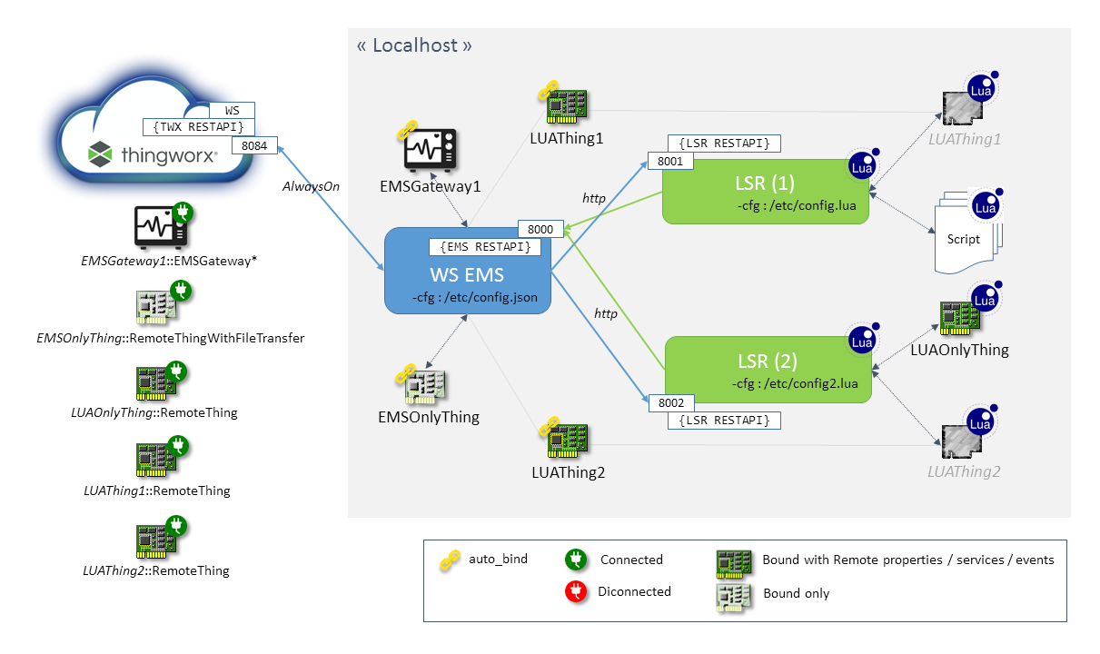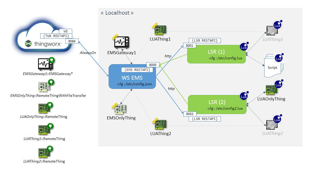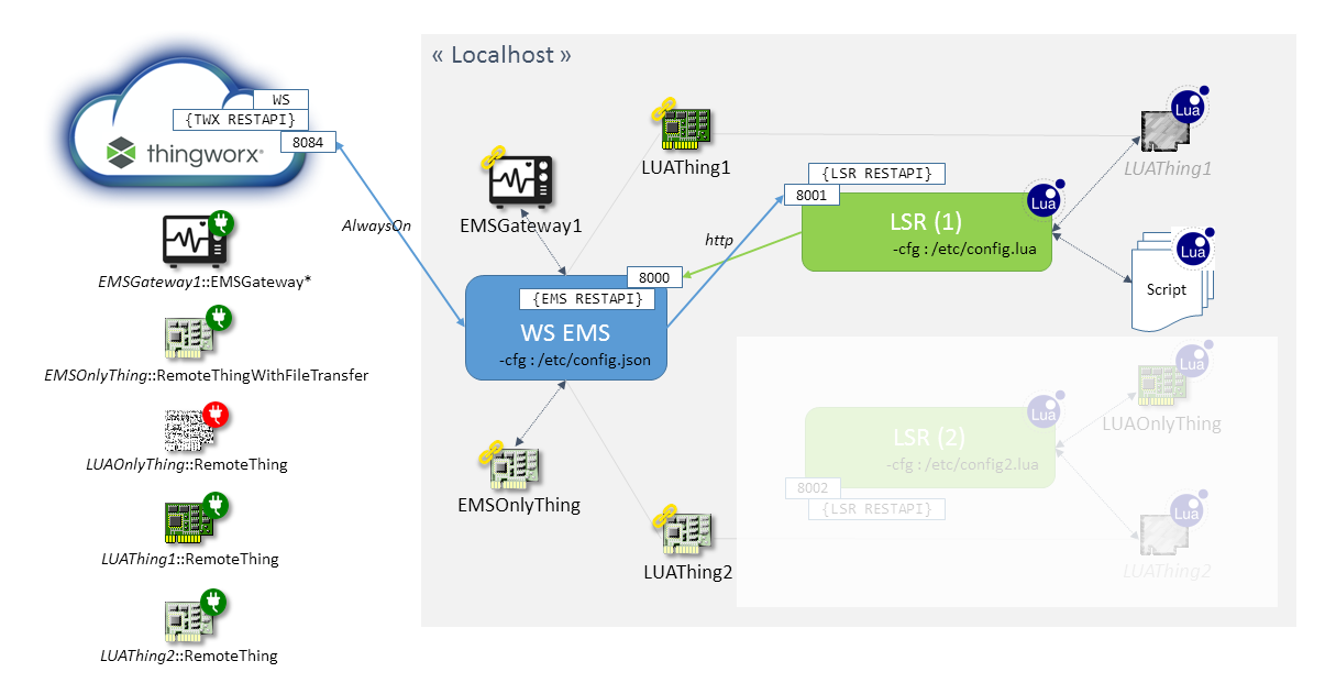 - LSR process (1) : /etc/config.lua - listening on default port 8001 (using the out of the box sample Lua scripts)