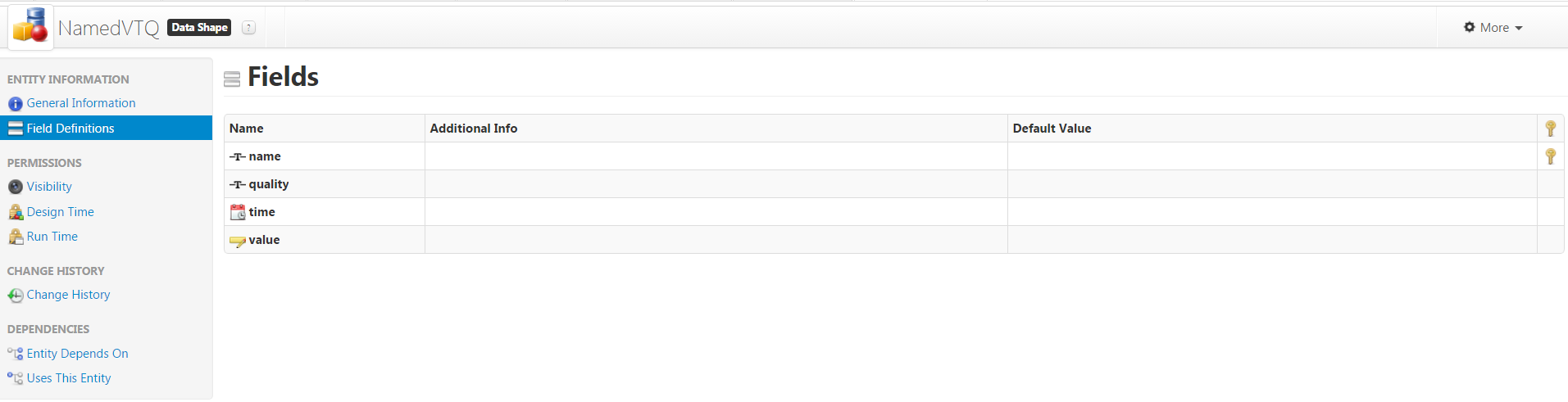 - In our service we will use a system defined DataShape NamedVTQ which has following field definitions: