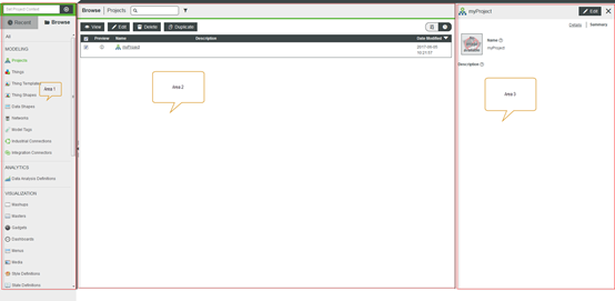 - Menu bar on the left (Area 1)