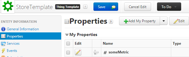 This is a simple case of just summing up a single property, but we can take this further using the Union and Aggregate snippets provided by thingworx to do other kinds of summarization. First add a new property called someAvgMetric βto our StoreTemplate, and define a new service GetKPIProperties as such, with an InfoTable result, on the StoreTemplate