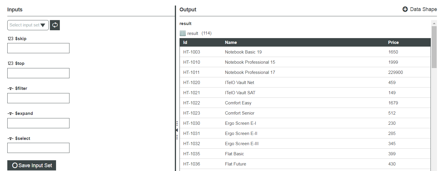 - SAPObjectDS : Id (STRING), Name (STRING), Price (NUMBER)