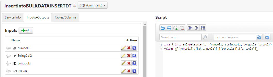 // calling the SQL Service InsertIntoBULKDATAINSERTDT created under a DB Thing called OracleDBThingNew