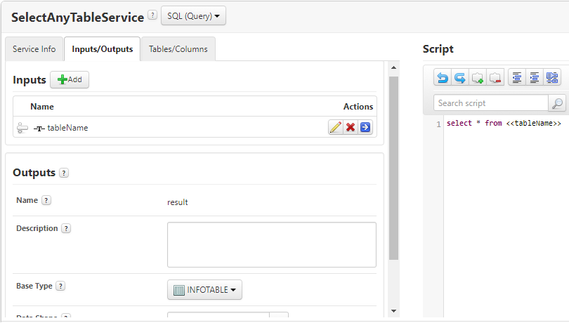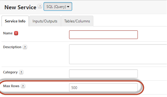 Note: BaseType defaults to Infotable when creating SQL (Query) service and the returned number of rows are restricted to 500. Therefore, if table contains rows more than 500, ensure to change the Max Rows parameters