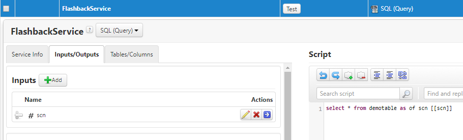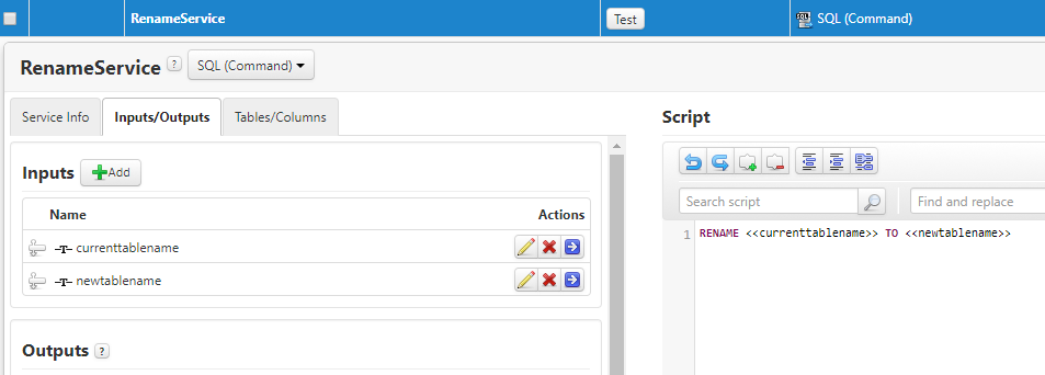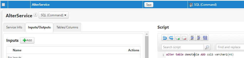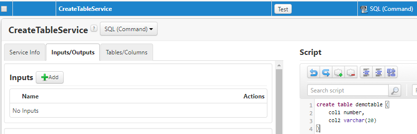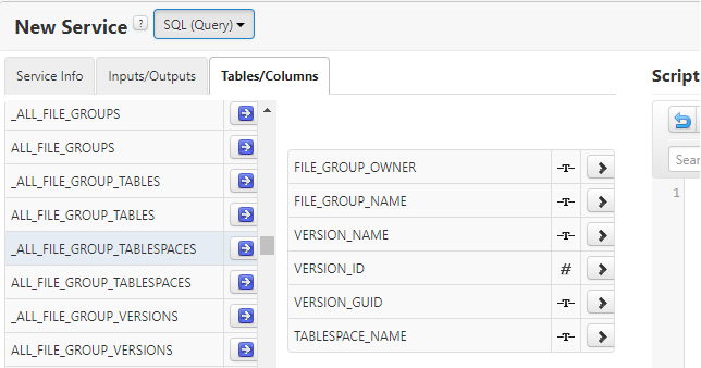 When creating a SQL service, apart from providing changing the Service Info and Inputs /Outputs, 3rd section Tables/Columns allows users to explore the Tables and their respective columns as part of that particular user's schema - meaning the objects on which the user has select rights in his schema in the database.