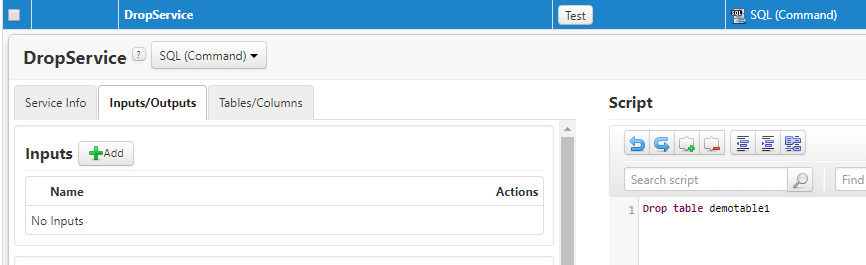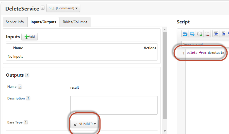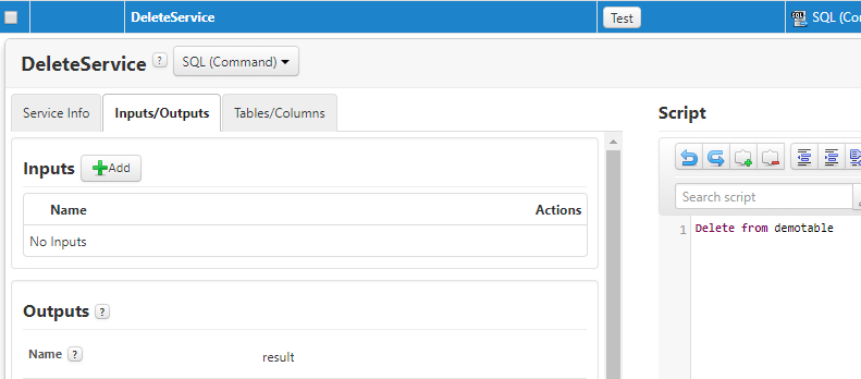5. Example on creating SQL (Command) service that delete all the rows from the database table