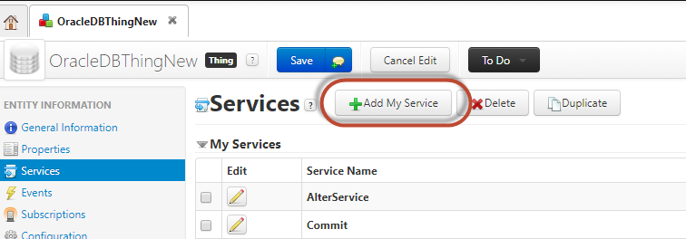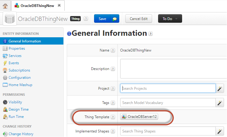 - Navigate to the Thing implementing the Database Template, e.g. OracleDBServer12