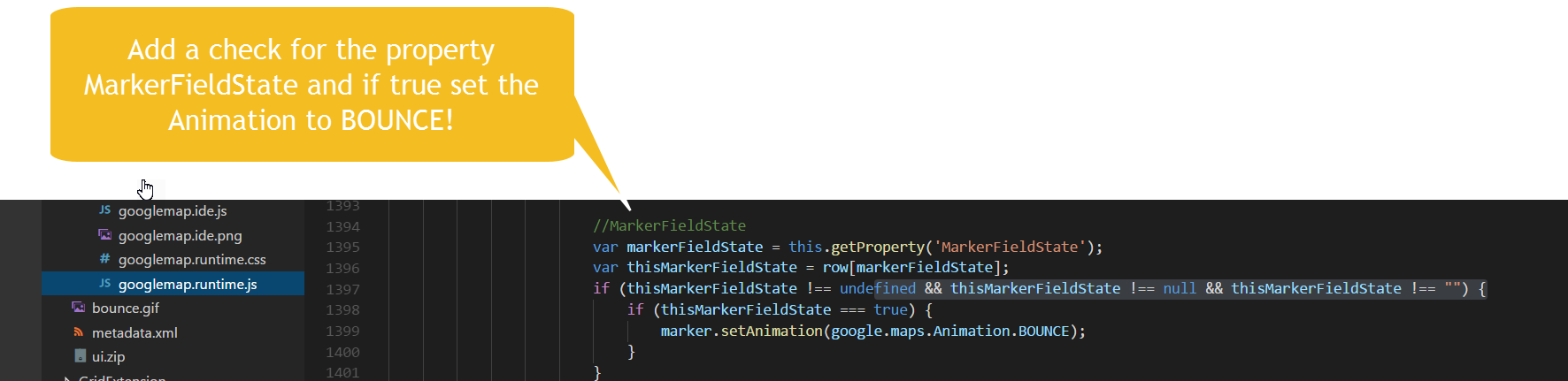 I was asked was it possible to make the Google Maps indicator bounce if a property was set to true. The answer is yes.