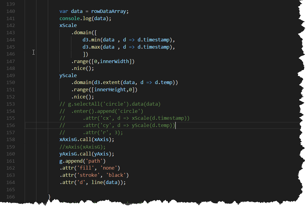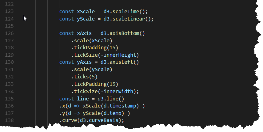 Now we are ready for the row data which gets defined as data and passed to the xScale and yScale using in the const line = d3.line()