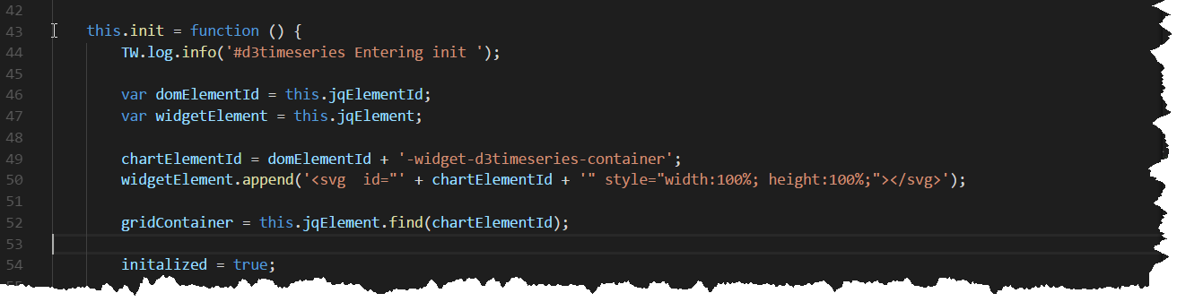 From there we can work in the d3timeseries.runtime.js file to define how to consume and pass data to D3.