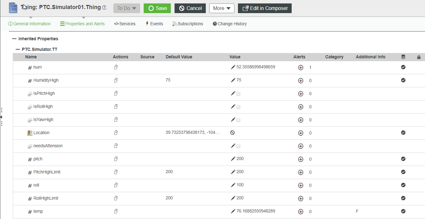 and the data was generated by a Timer based random value generator that set the values on a Thing every minute.