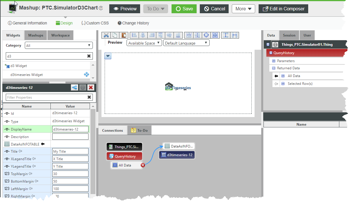 After zipping up and deploying and using in a mashup you should get a D3 timeseries chart.