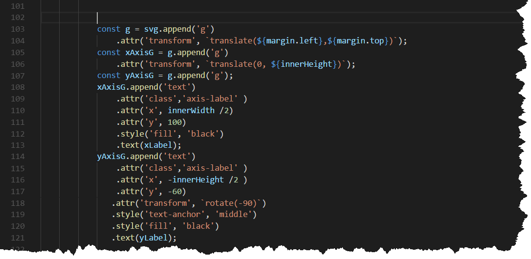 Next define x and y scale so the visualization fits in the area available and actually add the axis's and ticks, plus the definition for the actual line const line = d3.line()