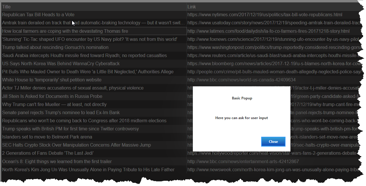 The image below image below shows the resulting UI after grid population and a user clicked a row