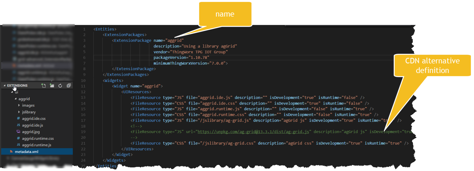 (see attachments - import AAGridExtensionExample as an extension and import as File PTC-ExternalSources-Entities )