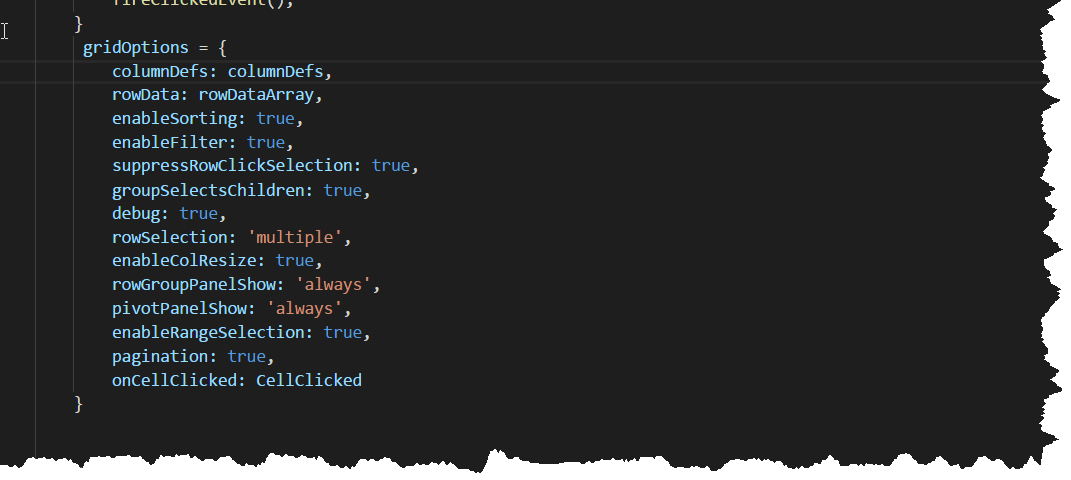 The gridOptions takes the form of a json object - note there are many options please refer to the agGrid documentation for more info.