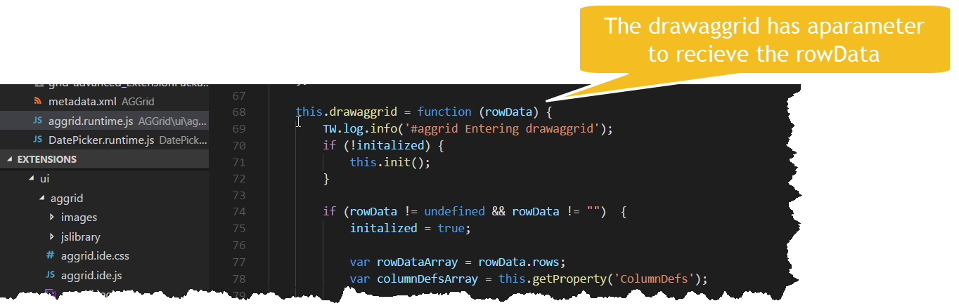 Here we check for the property and set and pass the RawData to the drawaggrid function