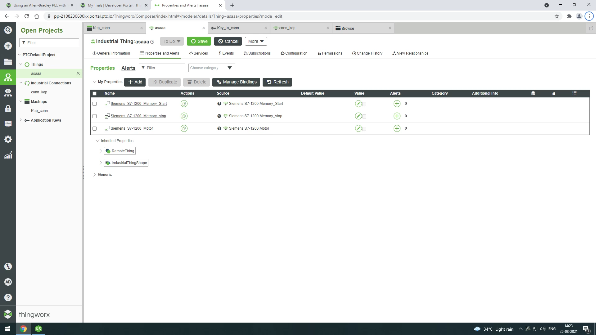Note: whenever you restart the KepServerEx, you need to save the Remote Thing in Thingworx, if not in the Remote Thing Signals show bad.