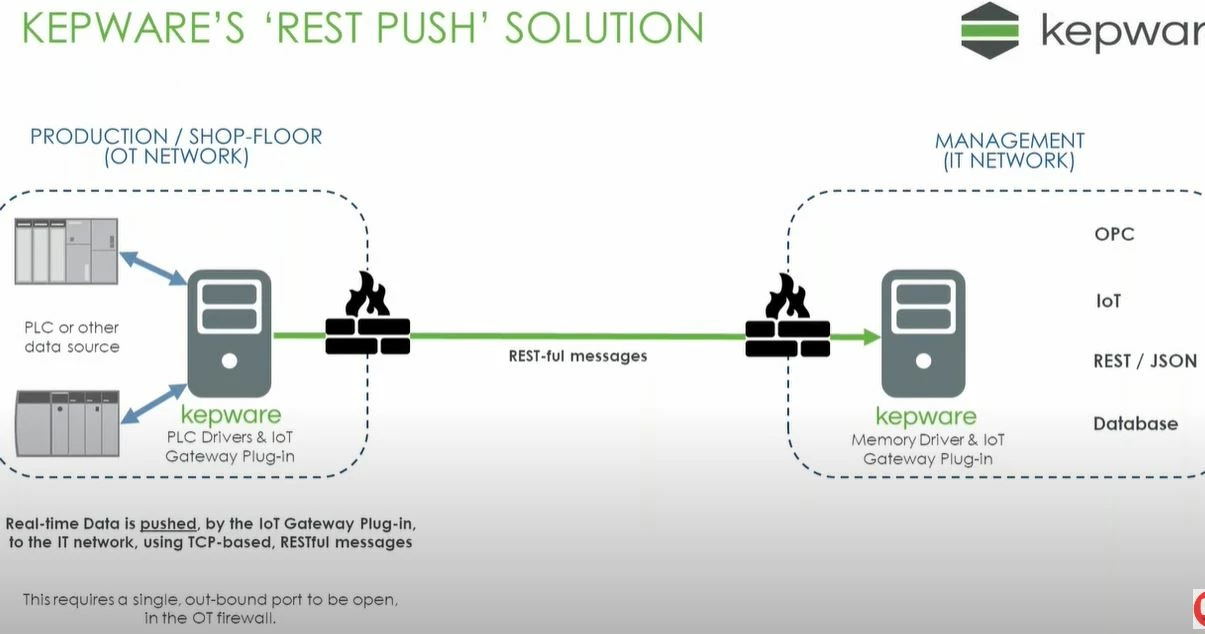 Due to security reasons i would like to create the schema architecture as it is depicted to the attachment file. Is it possible to have a kepware server to my our IT network and get data from another one from OT Network? If yes , could you please give some guidelines about that?
