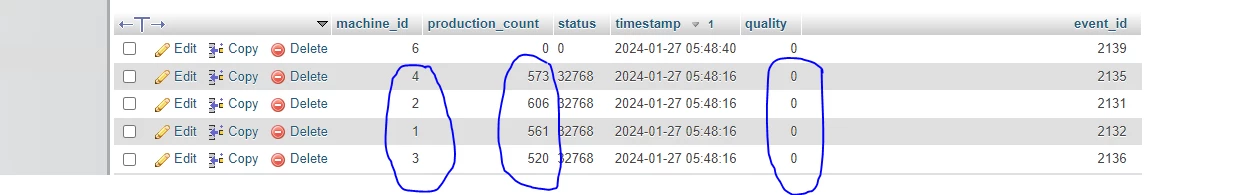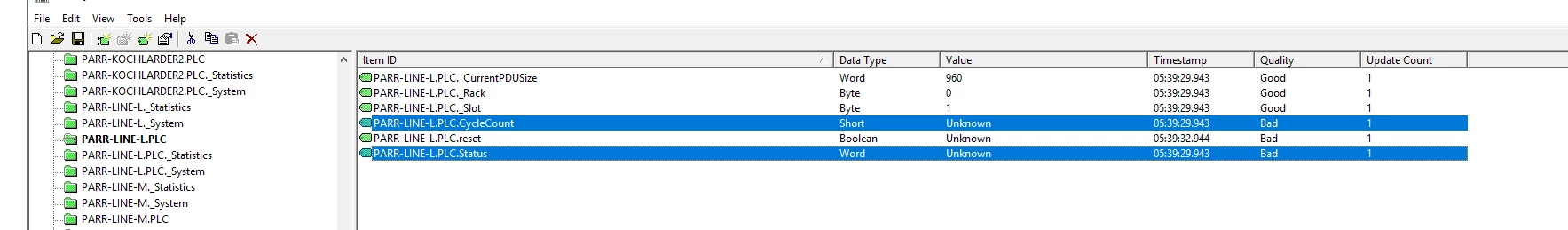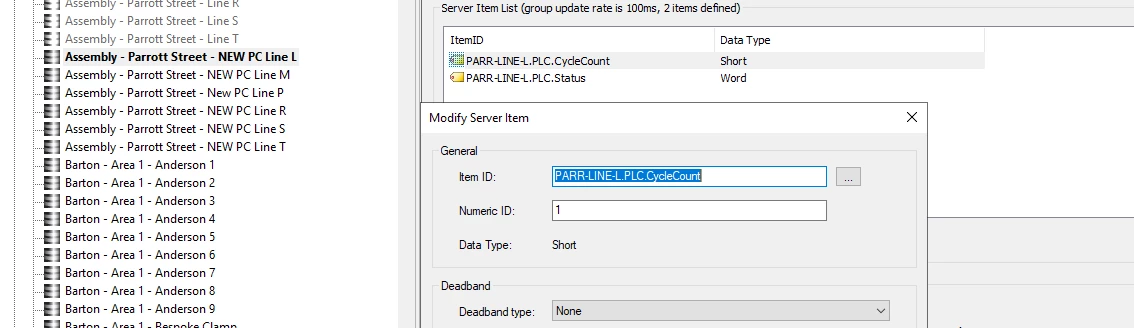 I have machines that are offline but it is still sending a value into the database. for example, in the screenshot here, PARR-LINE-L sends CycleCount and Status to the database. it uses numeric ID 1.