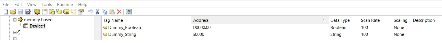 - Now in the Tag Group we can create new tags. As an example, one with address S0001 and type String.