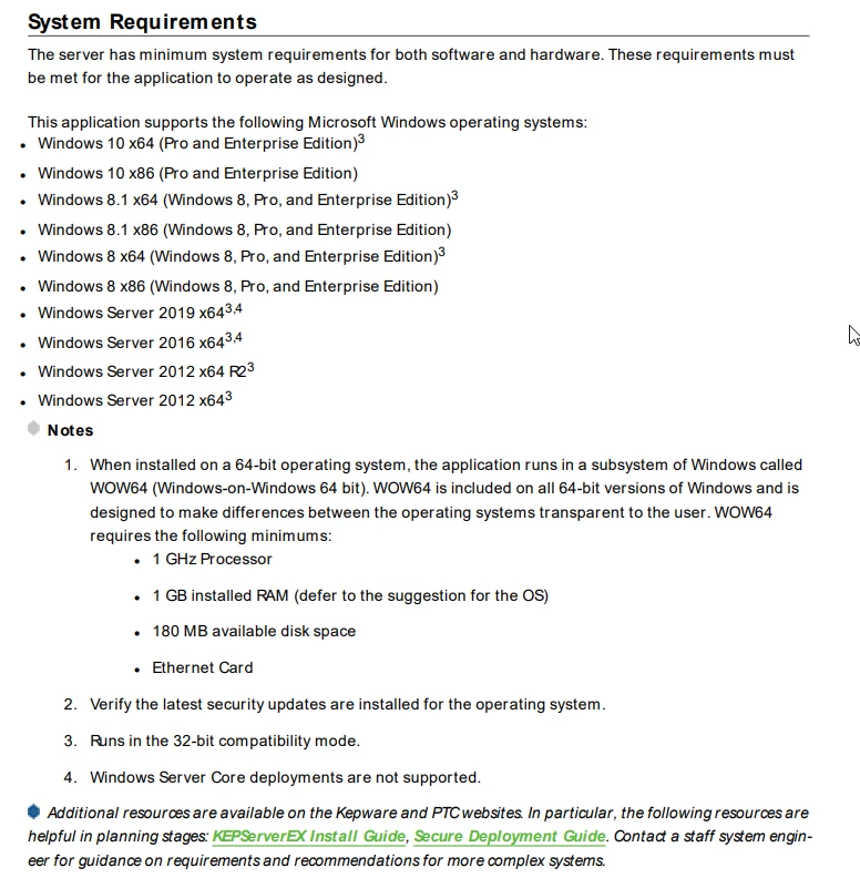 I am aware of the Thingworx Sizing Guide, but it does not address the size of the KepServerEX hardware. This reference shows the size of the KEpServerEX used, but no information as to how it was determined. Is there a document that provides that information?