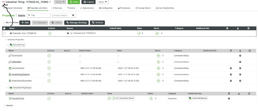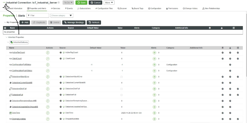 Unable to send [uri = / Things / IIoT_Industrial_Server / Services / BulkLog /]: IoT_Industrial_Server entity does not exist or is not yet associated with a Thing runtime