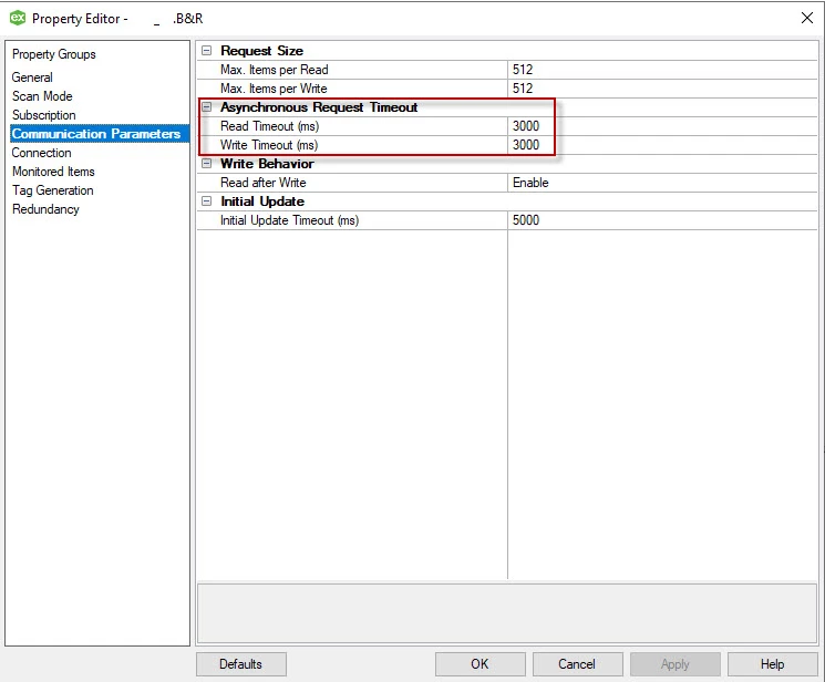 Warning OPC UA Client XYZ.B&R | Read request failed on device. | Status description = 'The operation timed out.', Status code = 0X800A0000.