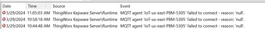 Error : MQTT agent IOT PBM5305 disconnected - reason 'null'