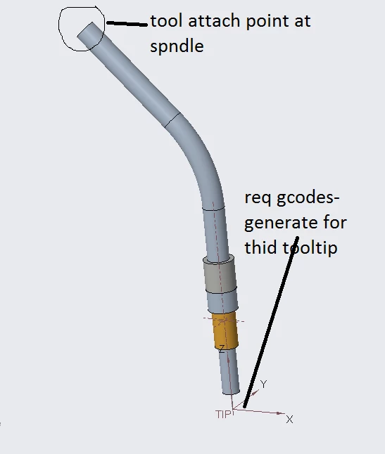 This statement and the information it specifies as needed for definition seems to indicate that it is intended as a means of using a rigid extension like a 90 degree head attachment. Meaning the attachment is rigid and all angles of its orientation stay the same during use, no rotations or other change of orientation during the machining. Notice it also says "3-Axis", which I would infer indicates that this can't be used in a 5-axis machine. It sounds like you're trying to replicate the motion that one would get from a robot arm with software that is intended to drive a straight tool. If you're working with a greater than 3-axis machine, why not just buy or adapt a welding tip that is straight, so you could then just treat it like a standard tool?