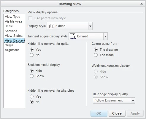 In my assembly I have a transparent component. (Its acctually a Workpiece in manufacturing.) The problem is that when I create a drawing with this assembly I can see thru this part. I can't see the hidden lines in this part, but I can see all of the lines in the fixture behind it. I would like to have this component display on the drawing as if it was solid. Is there a way to change this in the drawing?