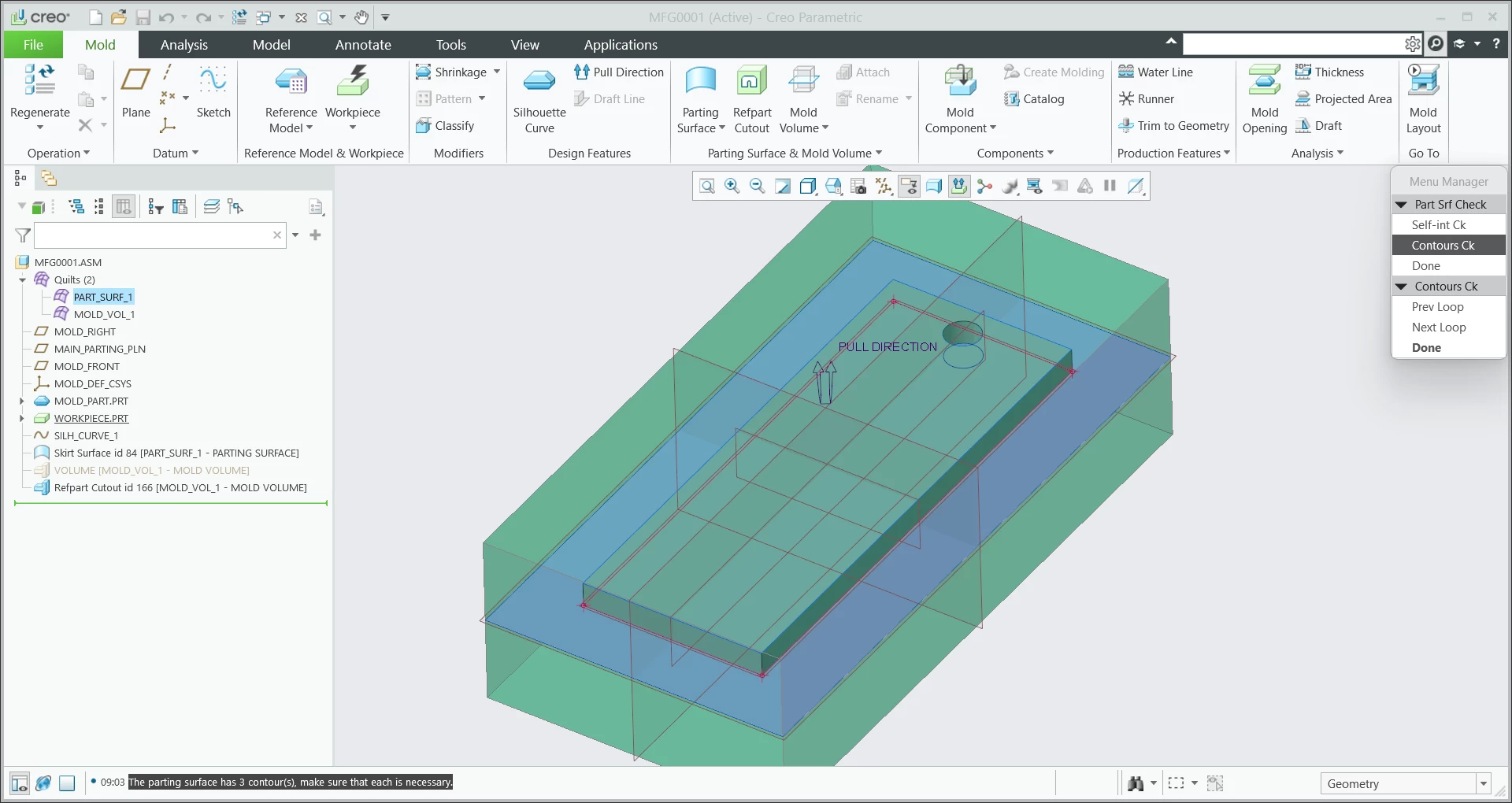The parting surface has 3 contour(s), make sure that each is necessary.