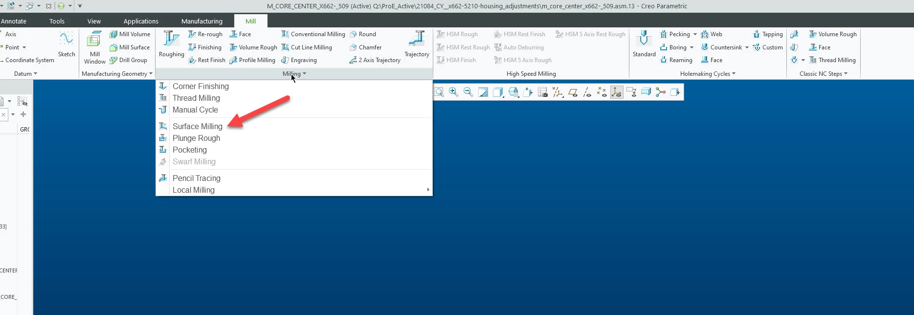 Sometime between 7.0 and 4.0 Creo think tank decided to destroy our most useful sequence. Surface Milling. What was done for so long in Surface Milling now has to be done in Conventional Milling. One can open an older project with surface milling in it, and it works fine. Make a change to that sequence, such as an added or removed surface, and it "updates" to the new version of surface milling which appears to be useless. This forces us to make a new conventional milling sequence.