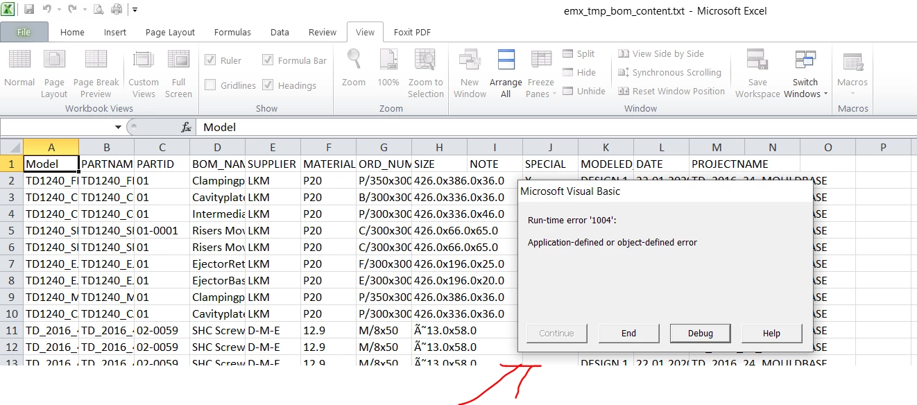 when i am run the macro file it gives the error