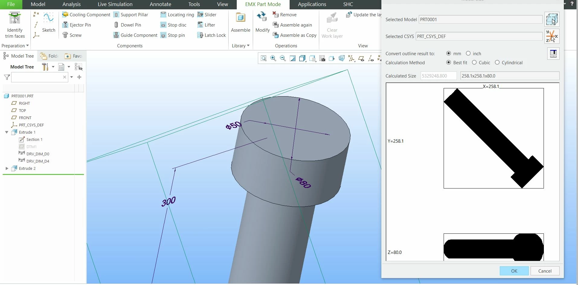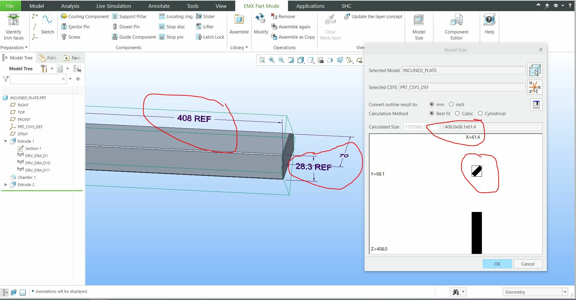 Part getting added in assembly successfully, but while generating BOM the size calculated by system is rectangular even part is like pin (Circular).