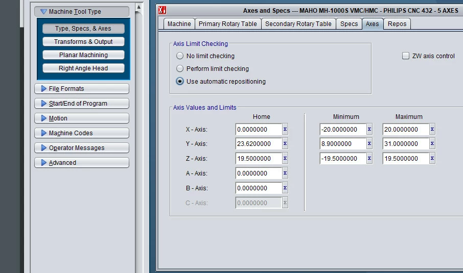 I have OKK 5 axis Machine with limited y axis travel CREO 9.03