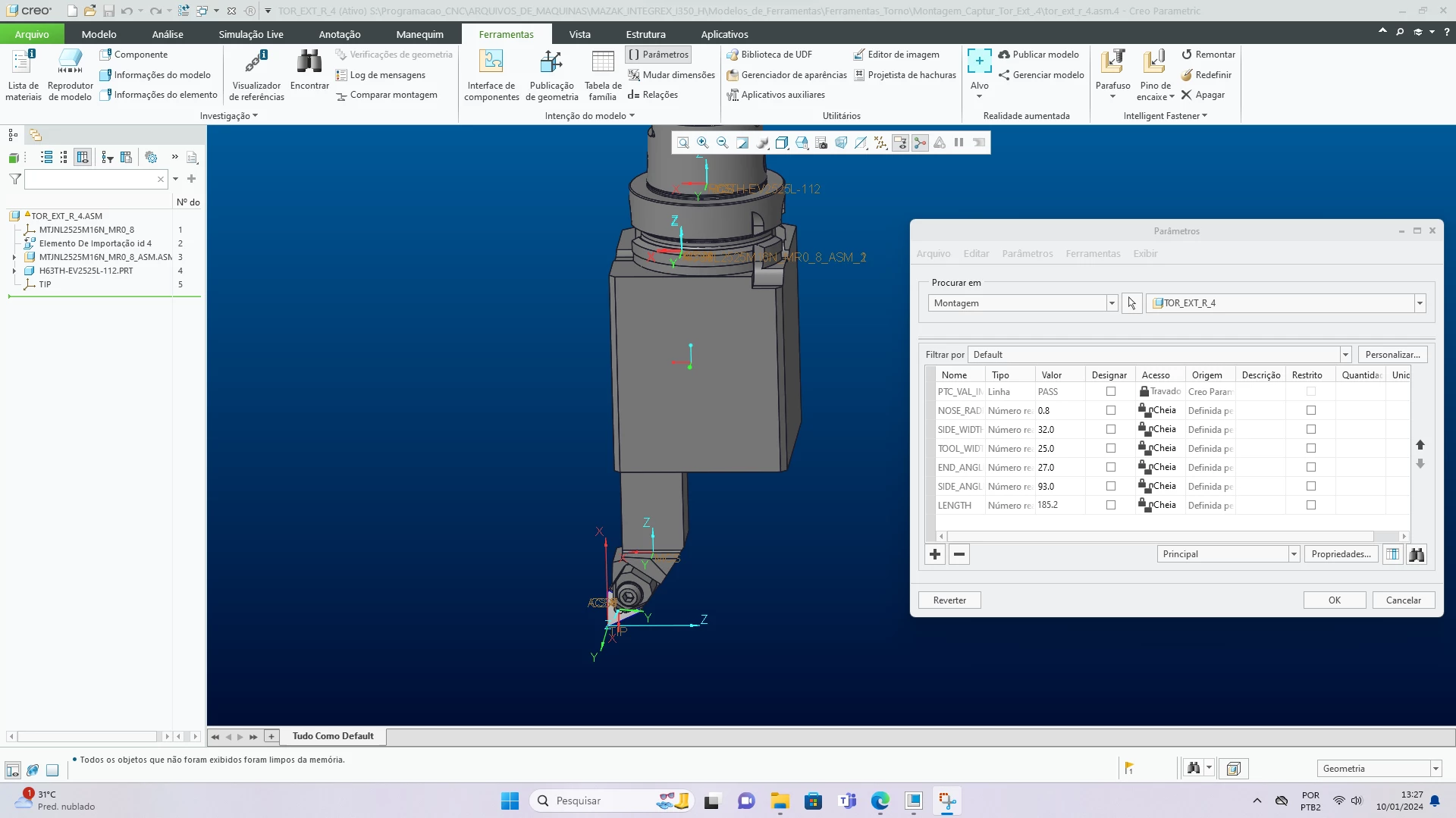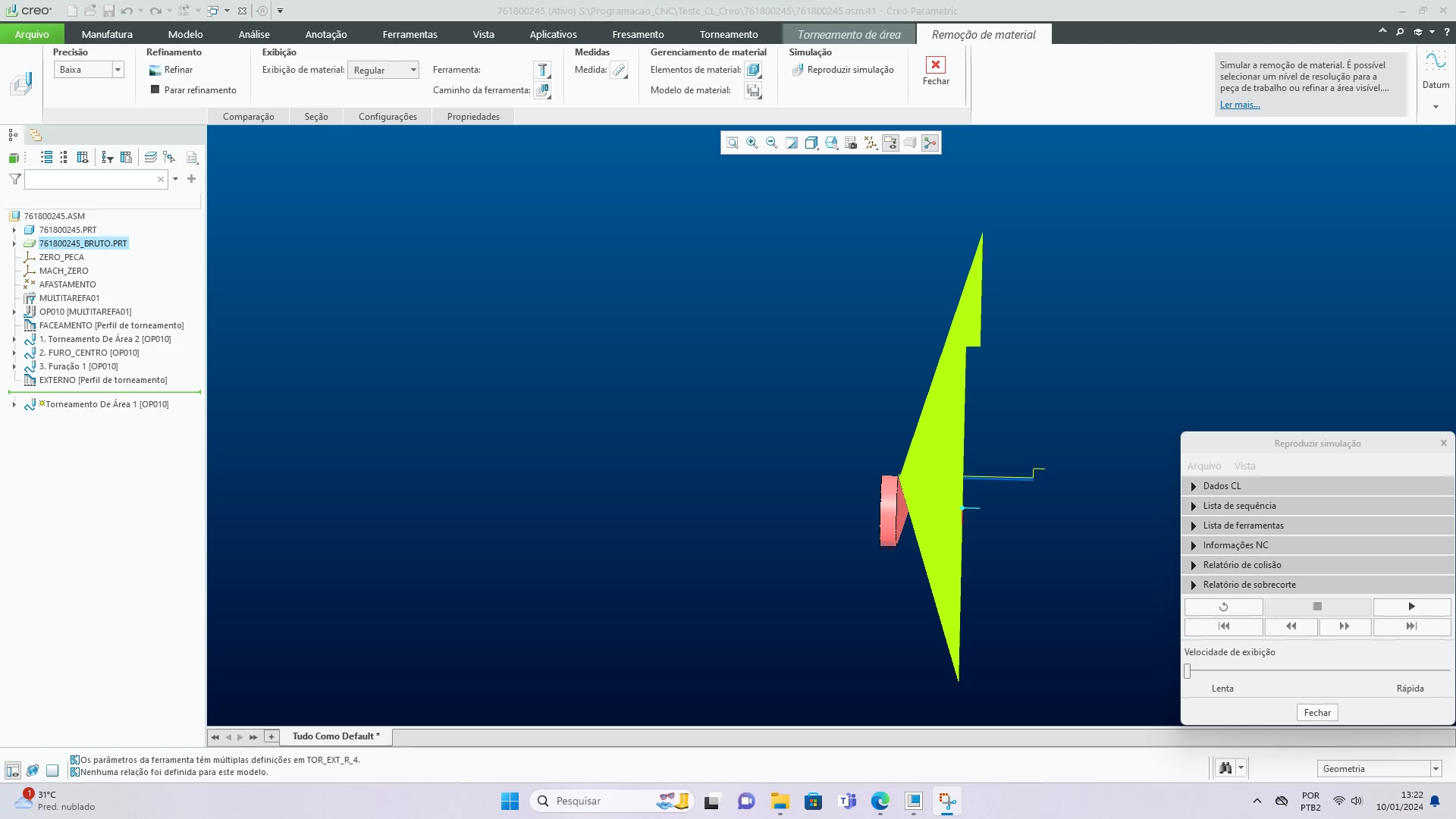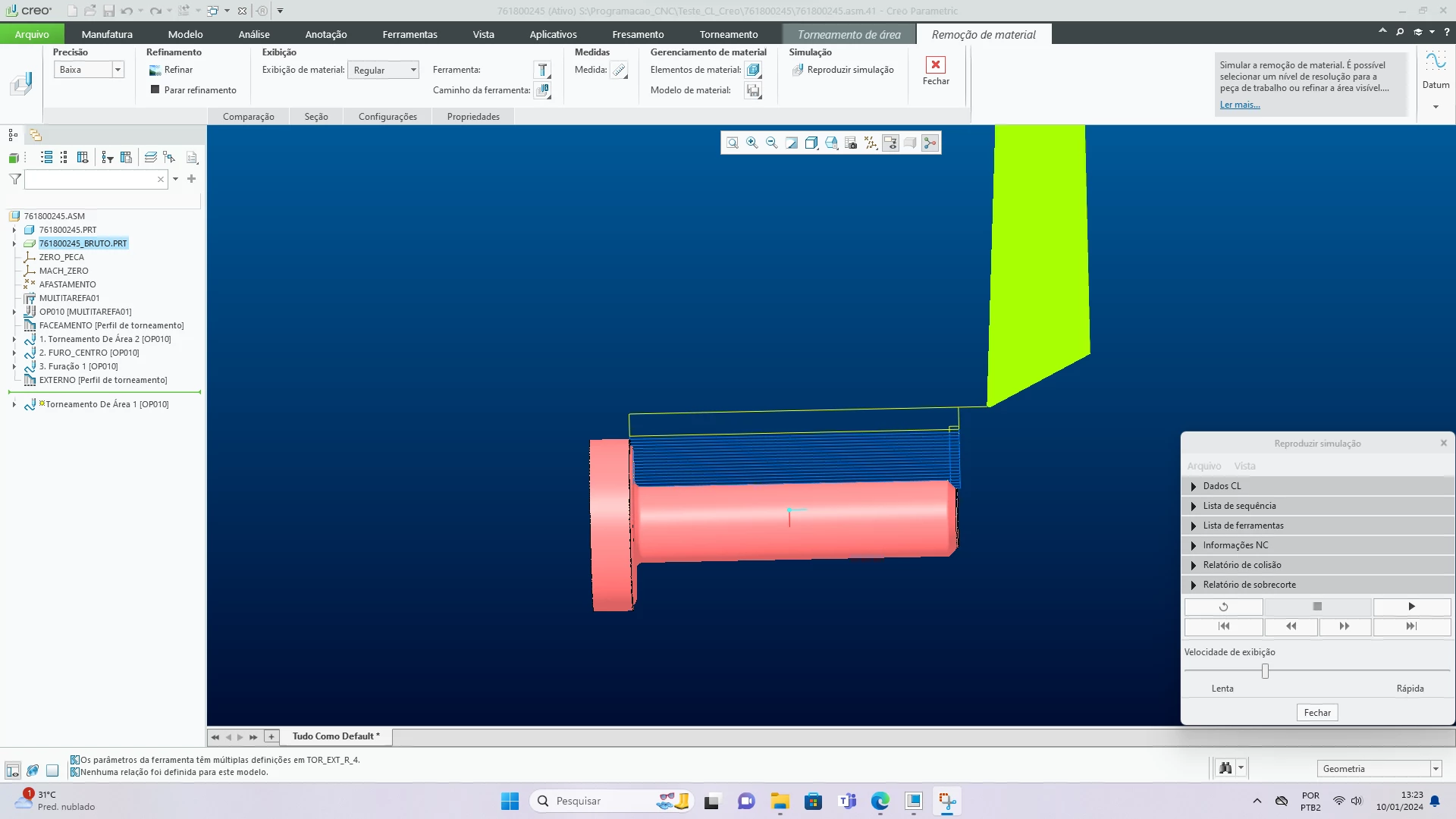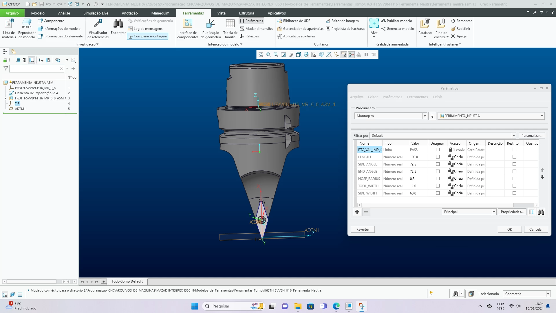 I am experiencing issues with the material removal simulation in creo parametric 10.1, where the play path changes the tools I imported. I imported the following tools: H63TH-SVVBN-H16 with a VBMT160408 and MTJNL2525M16N with TNMG160408L-ES.