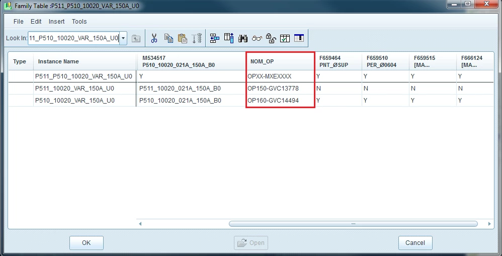 I am trying to use family table for manufacturing file. I would like to add different name for the machining operation when you activate an instance. For example, is it possible to add a global parameter named NUM_OP which is different for each instance (please look at the attached picture) and to add a relation to automatically rename the machining operation? Or is there another solution to realize this?